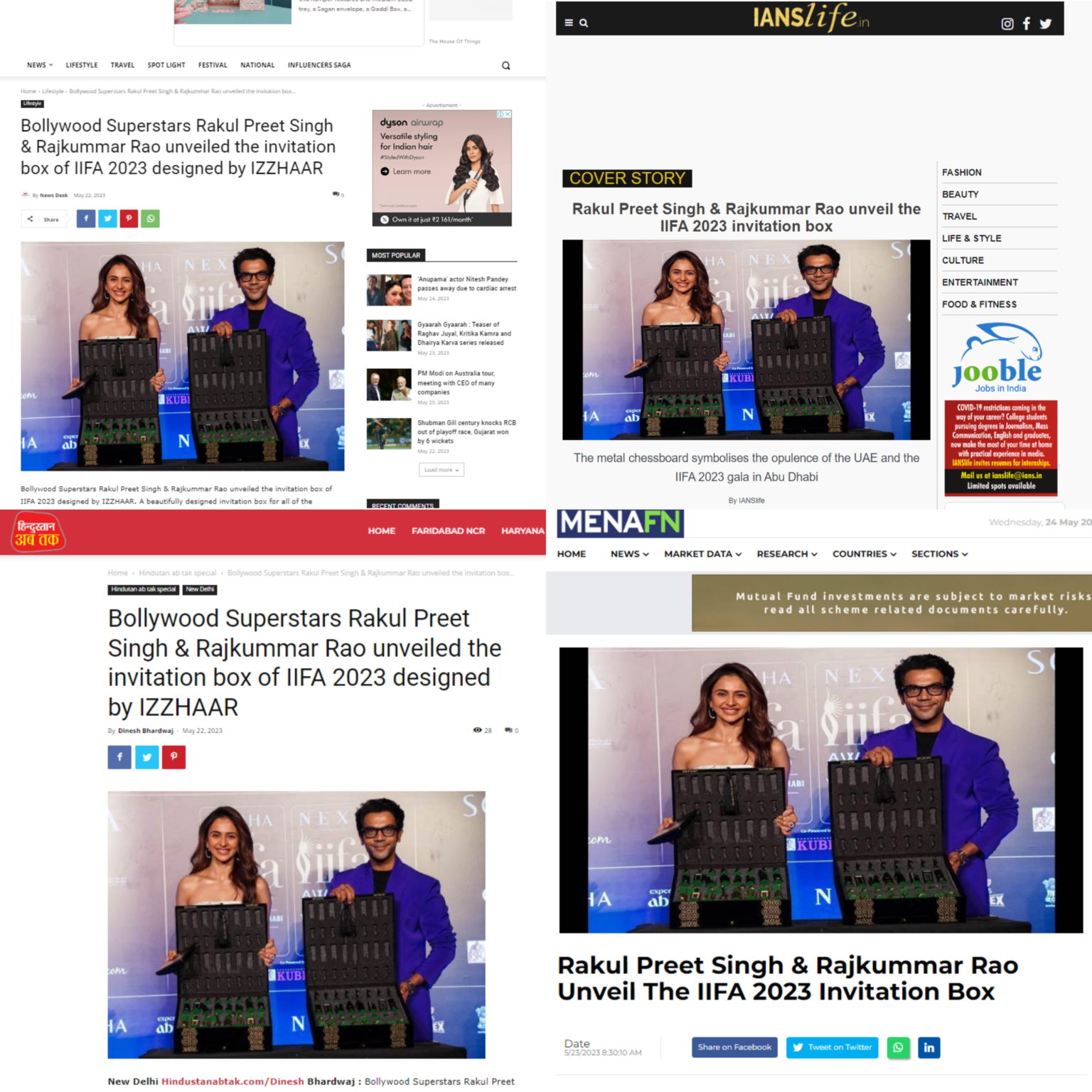 - https://hindustanabtak.com/bollywood-superstars-rakul-preet-singh-rajkummar-rao-unveiled-the-invitation-box-of-iifa-2023-designed-by-izzhaar/